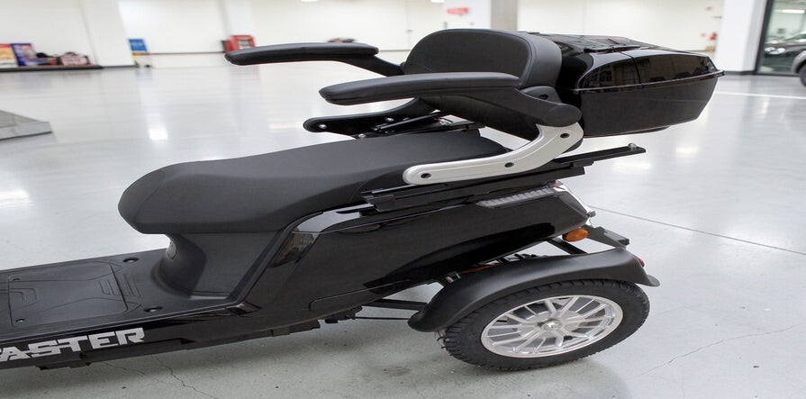 Check out our Faster Q1 XL electric mobility scooter. It has virtually the same features as our Faster Q1, but as a bonus, it comes with a windshield and a roof!